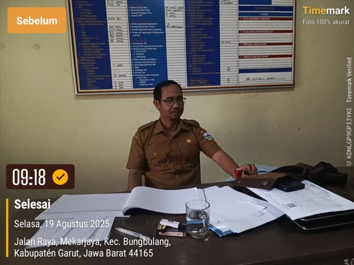 Kepala Desa Mekarjaya Kecamatan Bungbulang Ade Sahibul Ahsani saat diwawancarai awak media kalibernews sekaligus ketua DPD Iwo Indonesia Kabupaten Garut Selasa 19/8/2025 diruang kerjanya menyampaikan, bahwa benar adanya salah satu perangkat Desa Mekarjaya Kecamatan Bungbulang sebagai Sekretaris Desa berinisial IN saat ini sedang bersentuhan dengan Hukum.